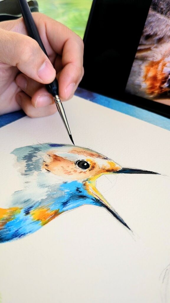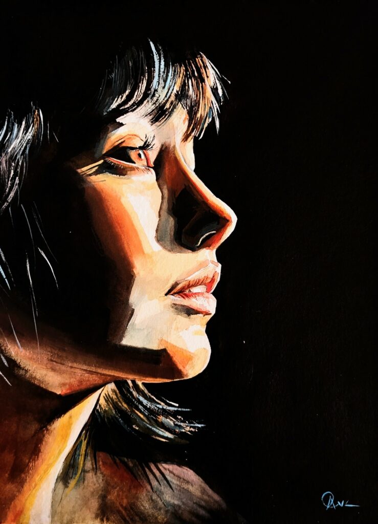 J’ai une affection particulière pour le portrait, car il offre une infinité de nuances pour exprimer les émotions humaines. En parallèle, je trouve dans les oiseaux une source d’inspiration inépuisable : leur diversité de formes, mais surtout de couleurs, me pousse à expérimenter différentes palettes.