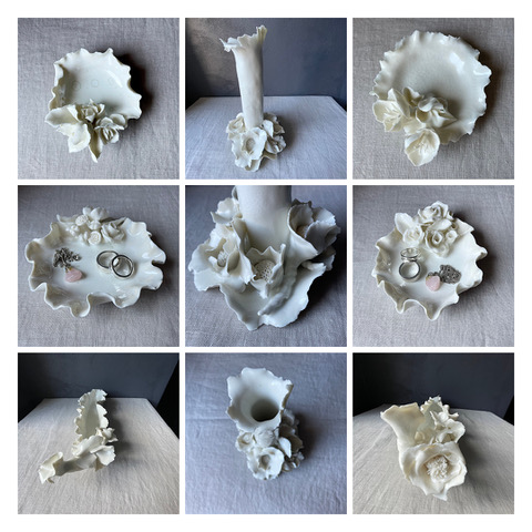 Depuis 2015 je me passionne pour le travail de la céramique à l’atelier du Lavoir (Clamart). Mes créations inspirées de la nature et de la flore sont des pièces uniques réalisées uniquement par moulage, en porcelaine ou porcelaine papier. Cette matière que j’affectionne particulièrement, me permet de sublimer la fragilité du monde végétal et d’obtenir des œuvres alliant finesse et transparence.