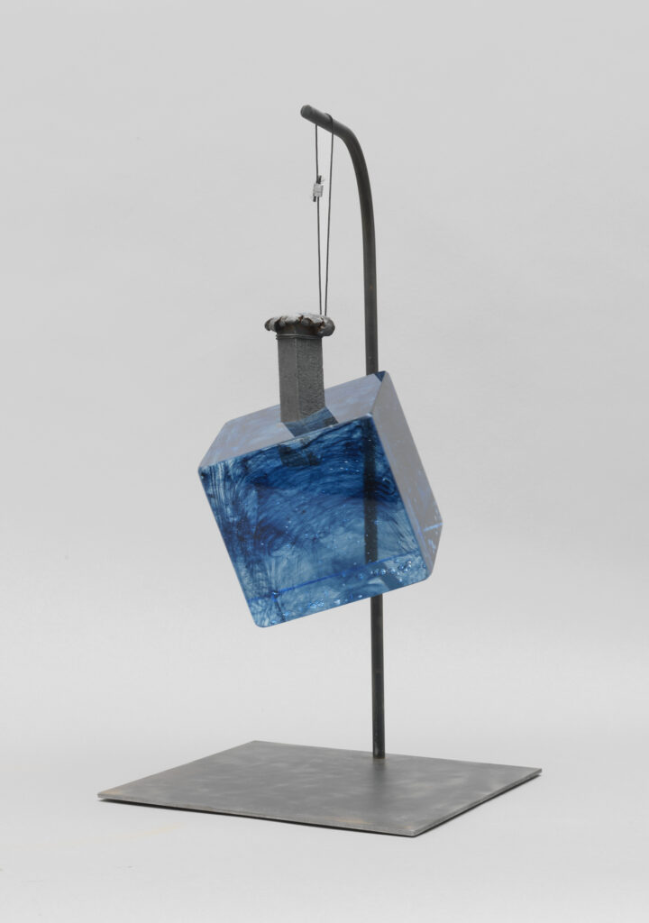 Le verre est captivant pour un sculpteur car il permet de travailler l’intérieur du volume en faisant jouer à la lumière un rôle encore plus fondamental. C’est un médium ambivalent, un liquide/ solide, un présent/absent, un fragile/solide, un intérieur/extérieur.